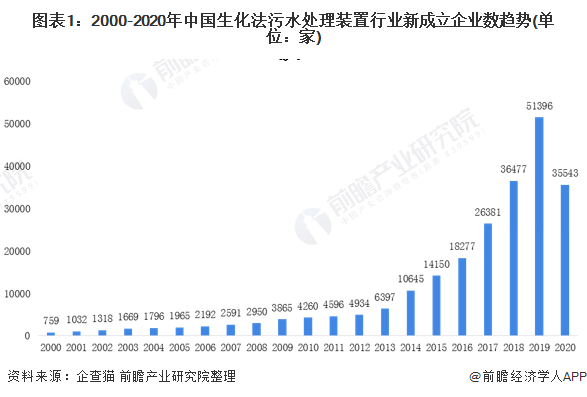 根據(jù)企查貓的數(shù)據(jù)顯示,2000-2020國生化法污水處理裝置行業(yè)新成立企業(yè)數(shù)呈現(xiàn)逐年上升趨勢。自2014年起,中國生化法污水處理裝置行業(yè)新成立企業(yè)數(shù)呈現(xiàn)爆發(fā)狀態(tài),在2019到了近年了峰值51396家,較2013年的6397家翻了將近5倍。截止到2020年12月初,中國生化法污水處理裝置行業(yè)新成立企業(yè)數(shù)為35543家,已經(jīng)逼近2018年全年的數(shù)據(jù)。