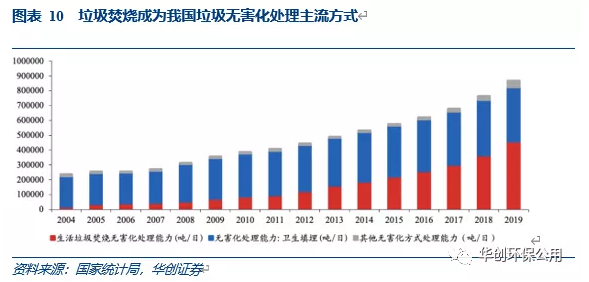 2、垃圾無(wú)害化處理量持續(xù)增長(zhǎng),垃圾焚燒確立主流地位