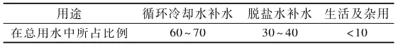 表3 不同用途新鮮水在總用水中所占比例