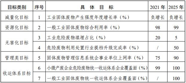 表 1 浙江省 2022-2025 年工業(yè)固體廢物污染防治主要目標(biāo)