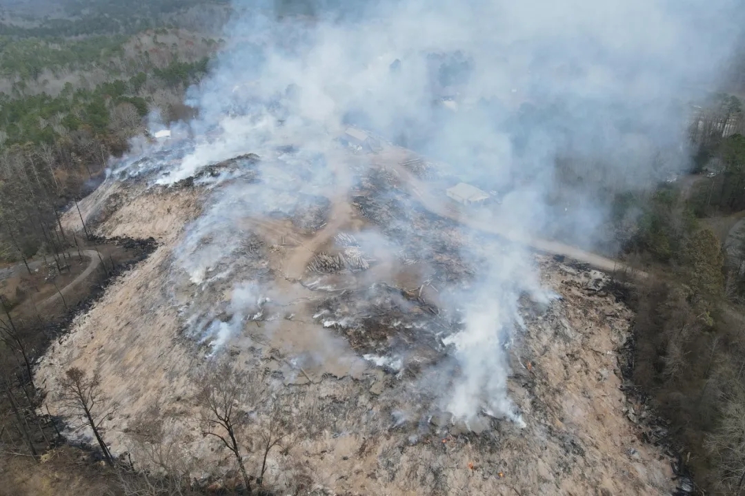 如在阿拉巴馬州伯明翰東北部穆迪垃圾填埋場,2022年11月,發(fā)生了一場大火,大火覆蓋了數(shù)十英畝土地,火勢基本在垃圾填埋場的深處蔓延,有些地方燃燒深度達150英尺,其后當(dāng)?shù)卣啻谓M織撲滅,都未能有效遏止,美國知名氣候變化媒體《 Inside Climate News》調(diào)查顯示,火災(zāi)延燒了一年零四個月,從2022年燒到2024年,時至本稿發(fā)稿之前,依然沒有火災(zāi)被撲滅的消息。
