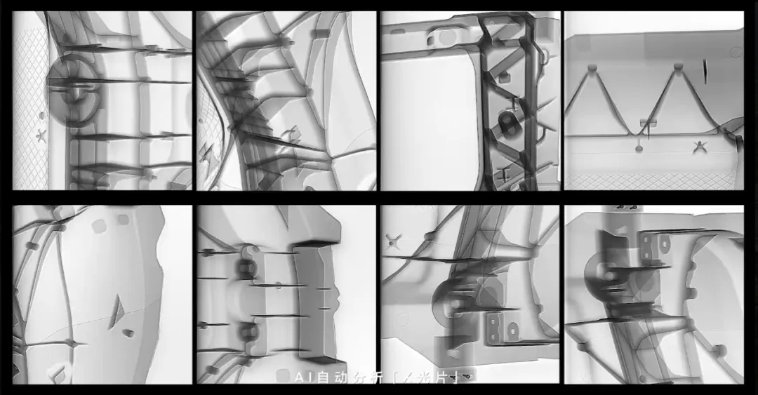 不僅如此,小米汽車工廠亦大規(guī)模投入了先進的高精度自動化檢測設(shè)備,對6大類工序進行實時在線檢測,保障每一輛SU7的高質(zhì)量保障,包括整車外觀100% 全自動化紫外光檢測、一體壓鑄后地板激光雷達在線檢測、電池激光焊接、涂膠、擰緊視覺算法賦能高精度動態(tài)定位檢測。除此之外,小米基于AI大模型自研的「X-Eye」檢測系統(tǒng),代替人眼精準檢測,質(zhì)檢準確率超過99.9%,保障高效率“零缺陷交付”。