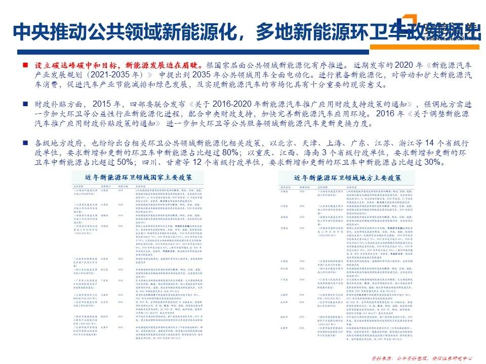 獲悉,十四五期間,把握固廢全產(chǎn)業(yè)鏈機(jī)會(huì),環(huán)衛(wèi)服務(wù)市場(chǎng)化正當(dāng)時(shí),新能源環(huán)衛(wèi)車(chē)大勢(shì)所趨,垃圾發(fā)電進(jìn)入新國(guó)補(bǔ)時(shí)代,詳情如下: