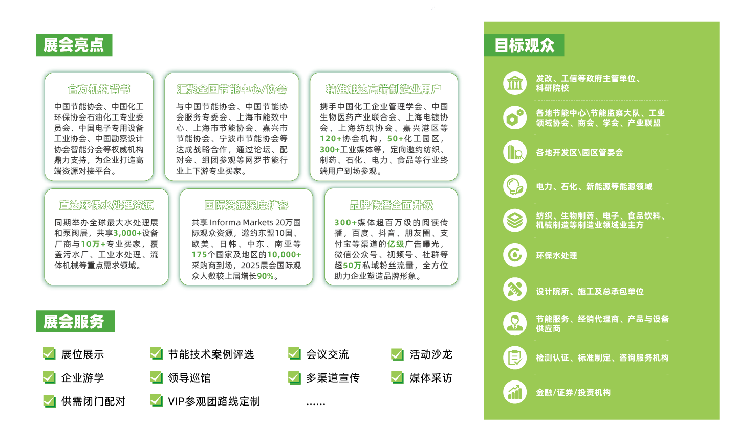 上海綠色智造展--節(jié)能技術(shù)主題展在此背景下順勢而生,展會將集中展示壓縮機、風(fēng)機、壓縮機配套電機、電機與電力系統(tǒng)、風(fēng)扇及通風(fēng)配件、智慧照明、永磁電機、伺服電機、控制及能源監(jiān)控系統(tǒng)、變頻控制系統(tǒng)等前沿產(chǎn)品及解決方案。2026年展會規(guī)模預(yù)計將達(dá)到20,000平米,吸引600多家品牌企業(yè)參展,匯聚30,000多位高端制造業(yè)等相關(guān)領(lǐng)域?qū)I(yè)觀眾,為參展企業(yè)搭建“技術(shù)展示+政策解讀+商業(yè)對接”的一站式交流平臺。